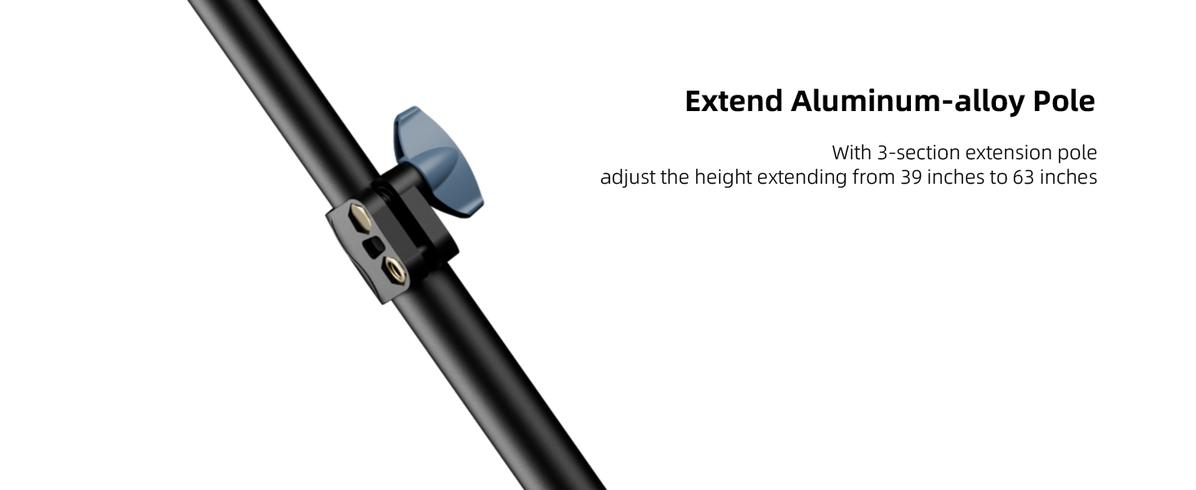 【 Adjustable Tripod Stand】-Adjustable tripod for iphone with light is made of high-quality aluminum, Extending from 39 to 69 inches(To the top of the light head) to meet your various height needs. Also with a standard 1/4" screw mount on the top