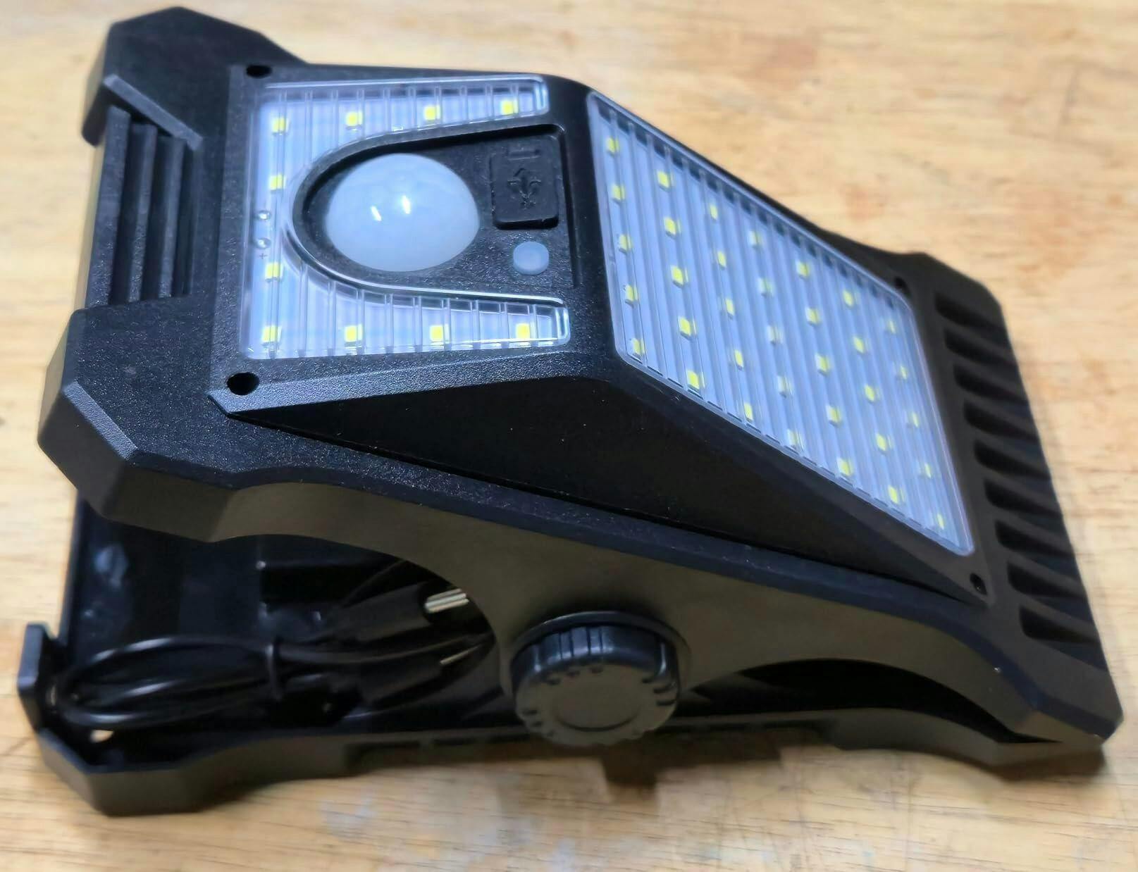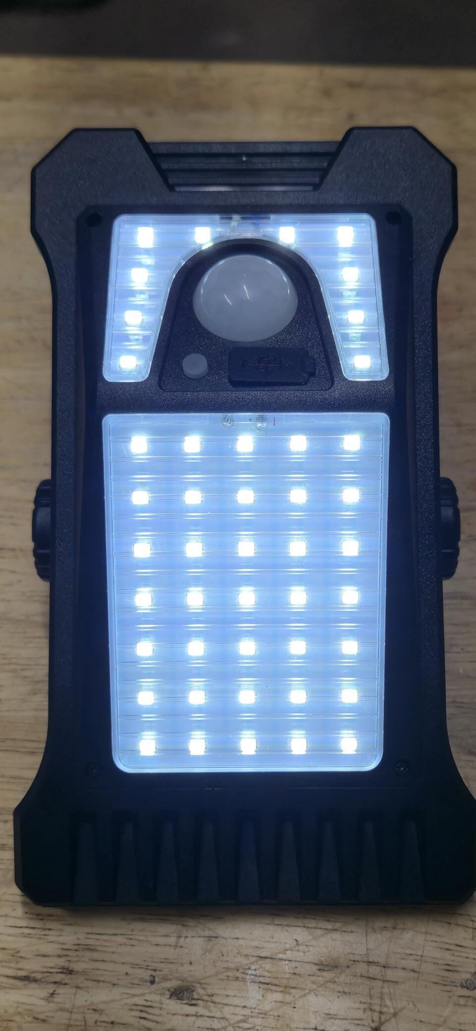 The motion sensor functions reliably at close range, though detection distance is limited and requires nearby movement to activate. A key feature of this light is the dual charging capability. It can be charged using the built-in solar panel or with the included USB cable, which adds flexibility when sunlight is limited. The housing feels solid and appropriate for outdoor use, and overall operation is straightforward.